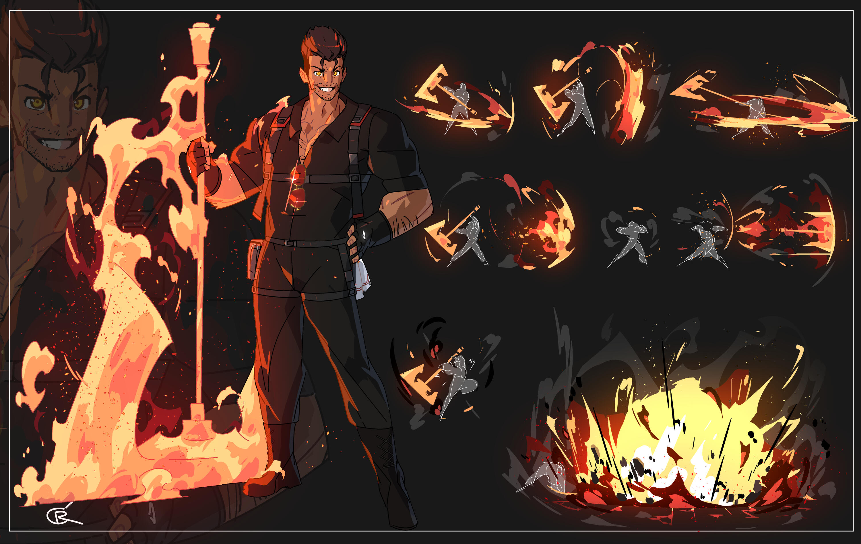 Eerik is a human male that left home to pursue his desire to travel the world and learn what happened to his birth parents. Though when not out traveling, he is often found cultivating his farmland that he calls home or helping his brother (Hughes) at the café.When young, Eerik's original home was attacked by unknown foes then covered up. His journey is to find out who attacked them, and why cover it up.During his travels, he has met many new allies and friends. Many can tell you that even though the man can get lost easily, he is always trustworthy and loyal. Always being there for you when you need it, with a smile on his face.At present, Eerik is able to control his fire magic but it can get out of control when used too much. Causing his body to increase it's temperature rapidly, making him use ice crystals to cool himself down.Additionally, he has heightened senses and inhuman strength. Leading him to be a great close-combat unit. Due to his heightened senses, he wears sunglasses often to help protect his sensitive eyes from bright light.